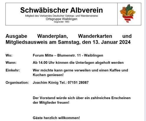 Ausgabe Wanderplan 2024 Sa., 13.01.2024, Uhrzeit: 14:00 - 18:00 iCalendar Mit dem Laden der Karte akzeptieren Sie die Datenschutzerklärung von Google.Mehr erfahren Karte laden Google Maps immer entsperren zur Übersicht