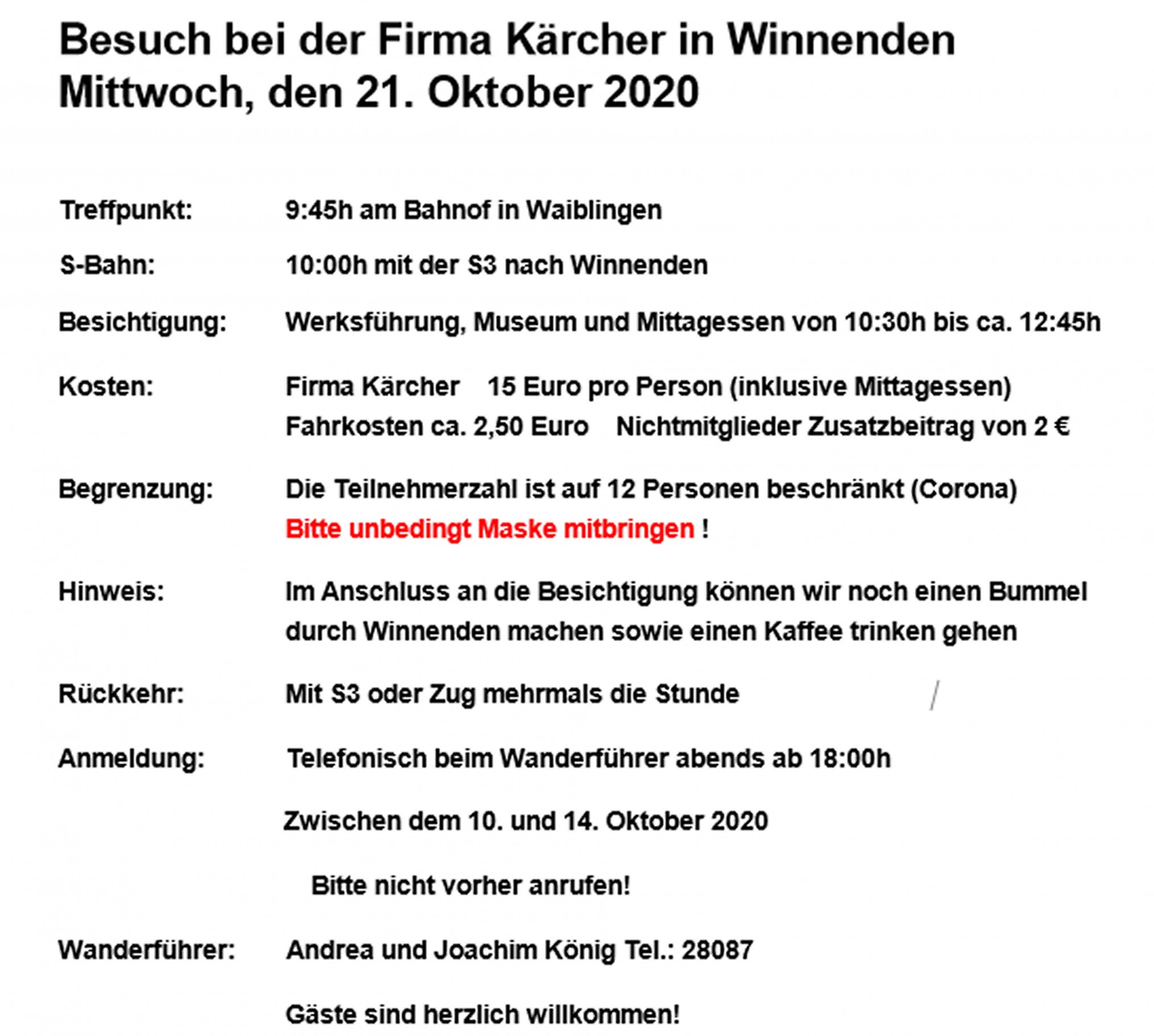 Besuch Fa.Kärcher Mi., 21.10.2020, Uhrzeit: 09:45 - 18:00 iCalendar Mit dem Laden der Karte akzeptieren Sie die Datenschutzerklärung von Google.Mehr erfahren Karte laden Google Maps immer entsperren zur Übersicht