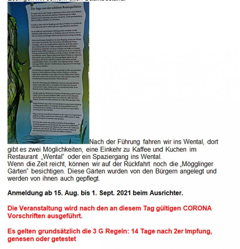 Gauseniorenausflug zur Remsquelle am Freitag, 3. Sept. 2021