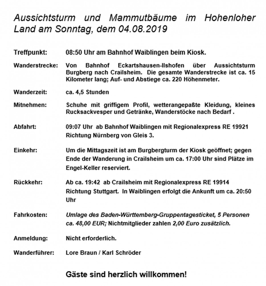 Hohenloher Land So., 04.08.2019, Uhrzeit: 08:45 - 21:00 iCalendar Mit dem Laden der Karte akzeptieren Sie die Datenschutzerklärung von Google.Mehr erfahren Karte laden Google Maps immer entsperren zur Übersicht