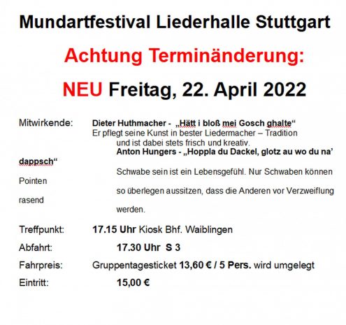 Mundartfestival Fr., 22.04.2022, Uhrzeit: 17:15 - 20:30 iCalendar Mit dem Laden der Karte akzeptieren Sie die Datenschutzerklärung von Google.Mehr erfahren Karte laden Google Maps immer entsperren zur Übersicht