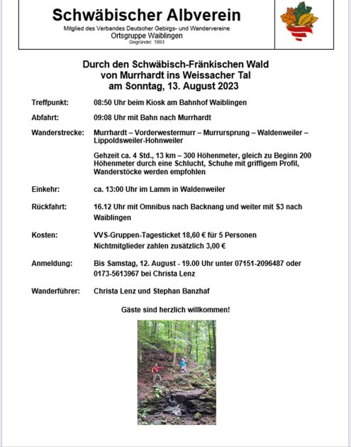 Schwäb.-Fränk.-Wald So., 13.08.2023, Uhrzeit: 08:45 - 16:15 iCalendar Mit dem Laden der Karte akzeptieren Sie die Datenschutzerklärung von Google.Mehr erfahren Karte laden Google Maps immer entsperren zur Übersicht