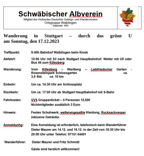 Stuttgart So., 17.12.2023, Grünes U in Stuttgart – Parklandschaft mit acht Kilometer Grünflächen (stuttgart-tourist.de) Uhrzeit: 09:30 - 17:00 iCalendar Mit dem Laden der Karte akzeptieren Sie die Datenschutzerklärung von Google.Mehr erfahren Karte laden Google Maps immer entsperren zur Übersicht