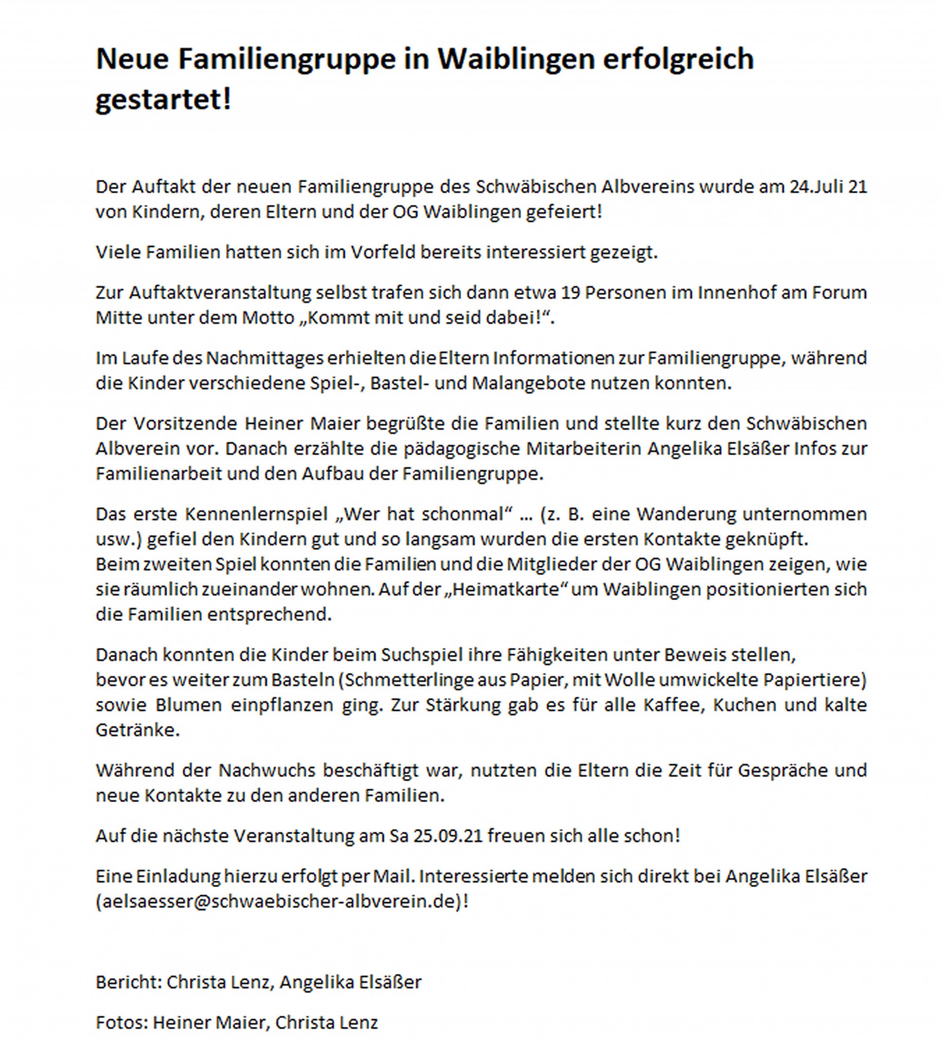 „Kommt mit und seid dabei! Die Familiengruppe Waiblingen freut sich auf EUCH!“
