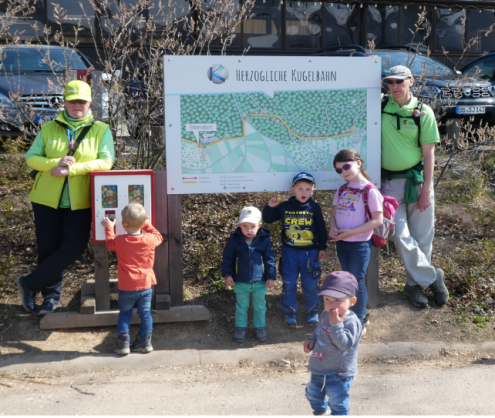 Bei blauem Himmel und Sonnenschein trafen sich am vergangenen Samstag 14 große und kleine Begeisterte zur Wanderung zu der Herzoglichen Kugelbahn.