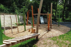 Nach den Wein-Kugelbahnen folgten die Bahnen zum Thema Württemberg. Im nächsten Themenbereich folgten nun 12 Kugelbahnen zum Thema Leben im Wald. Die Holz-Kugeln rollten mit Katapult, Axt und Klängen durch den Wald.